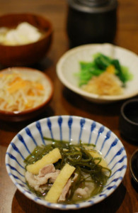 春の晩酌レシピ 鶏もも肉と水菜の酒蒸し、蕗味噌。