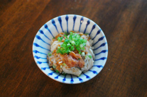 蕪とツナのしょうが蒸し焼き、納豆汁で晩酌。