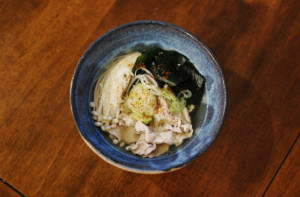 せせりの葱塩ダレ、もやしのからし和え。