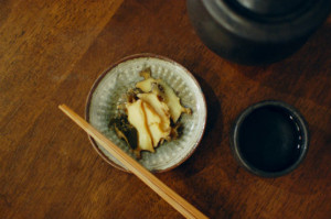 ぶりカマの昆布蒸し、キャベツの梅おかか和え献立。